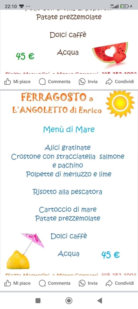 In sum, the diverse menu at L'angoletto Di Enrico offers something for everyone, with a variety of traditional and creative dishes, all prepared with the freshest ingredients. Whether you're in the mood for pasta, pizza, or seafood, each dish is a testament to the restaurant’s dedication to authentic Italian flavors.